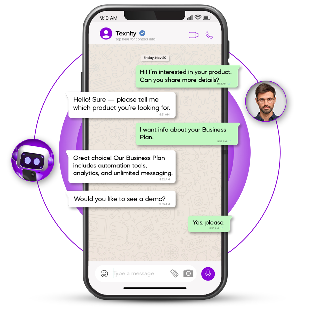 Turn your WhatsApp into a smart business assistant — upload your guide and let the AI chatbot handle every conversation with human-like precision.